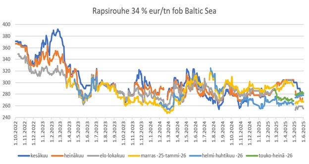 Öljy- ja valkuaiskasvipuolella markkinahinnat ovat pysytelleet kilpailukykysyisemmällä tasolla ja trendi näyttää jatkuvan. EU-alue on valkuaisen alituotantoaluetta, mikä näkyy tällä hetkellä hinnoittelussa. Myös meillä täällä kotimarkkinalla olisi hyvä nostaa valkuaisomavaraisuutta ja ottaa öljy- ja valkuaiskasvit mukaan ensi vuoden viljelysuunnitelmaan.