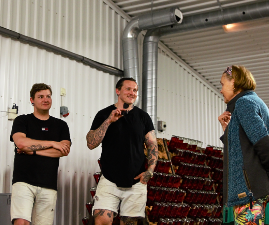 Lounaalla tutustuttiin Rönnvikin tilaan ja kuultiin ravintoloitsija Mervi Ruohoselta hänen polustaan Laitikkalaan yrittäjäksi. Ruohonen tarjoaa Rönnvikin kesäbistrossa itsetehtyjä lähiruokaherkkuja vierailijoille. Hän työskentelee tiiviissä yhteistyössä Rönnin suvun kanssa, jotka kantavat yhä vastuun viinintuotannosta. Emäntä Eila Rönni johdatti joukon lounaan jälkeen viinehtimöön tutustumaan marjaviinin valmistukseen. Viinien tuottaminen on Suomessa rajattua: