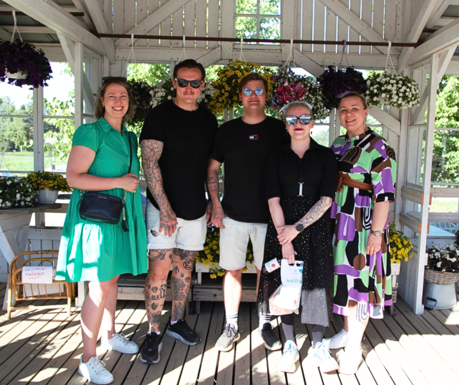 Kuva: Iloinen matkaseurue viiden tilan kierroksen jälkeen