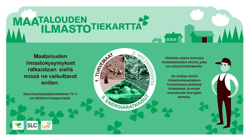 Ilmaston lämpeneminen vaikuttaa jo nyt maatalouden harjoittamiseen Suomessa. Ilmastonmuutoksen hillintä ja siihen sopeutuminen edellyttävät vahvaa tieteellistä tutkimusta, laajaa yhteistyötä ja kustannustehokkaita toimenpiteitä kaikilta yhteiskunnan sektoreilta seuraavien vuosikymmenten aikana. MTK julkaisi Maatalouden Ilmastotiekartan vuonna 2020 ja päivitetyn tarkastelun eli Maatalouden vähähiilisyystiekartan 20.8.2024.