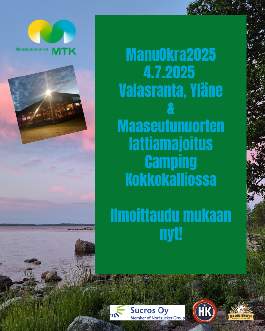 MTK-Etelä-Savon maaseutunuorten valiokunnan valintakokous 13.12., ilmoittautuminen 5.12. mennessä.